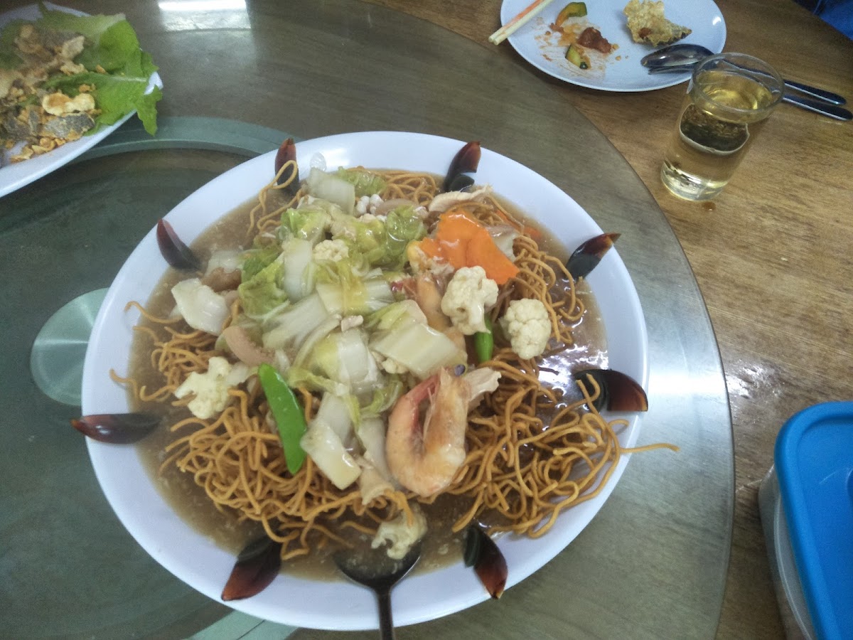 The menu here is a delightful journey through classic flavors and creative twists. One standout is the Yam Ring Mantis Prawn, a crispy, golden nest that holds succulent, perfectly cooked prawns, making each bite a mix of texture and rich taste. Another favorite is the Squid Sweet and Sour, balancing tangy and savory flavors that dance on the palate, making it a must-try for seafood lovers. For noodle enthusiasts, the Santuary Egg Noodles are a comforting dish, with perfectly springy noodles paired with a savory sauce that feels both hearty and satisfying.